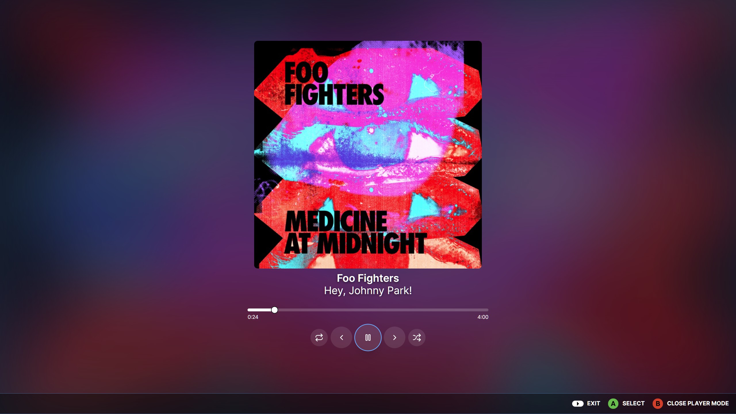 Stylish interface inspired by Steam Big Picture. This audio player feels right at home on your Deck.